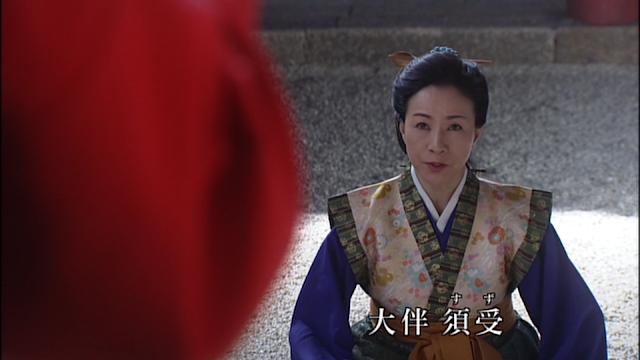 這邊值得一提的是其中一位角色,大伴須受,這位大伴里的女首長,嚴格來說大伴須受及其一族不是蝦夷人,反而是和人,他們祖籍信濃國,來到蝦夷之地後負責為朝廷養馬,也因為這樣的關係,跟鄰居蝦夷人很熟,感情也很好,劇中設定大伴須受便是看者阿弖流為兄妹三人長大,阿弖流為也很敬重他。